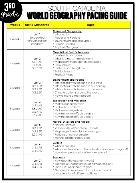 These standards really want students to understand the physical features, climate patterns, and cultural characteristics of places around the world, so students will spend the first part of the year learning about continents and oceans, maps, what physical features are, what culture and economy is, what climate patterns are, and how all these things work together to affect people and where they live. During each unit, students will conduct research on a specific region of the world to apply what they have learned.